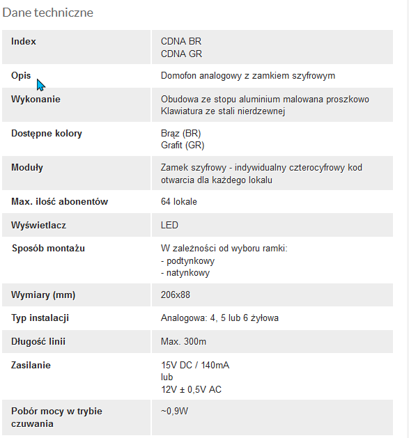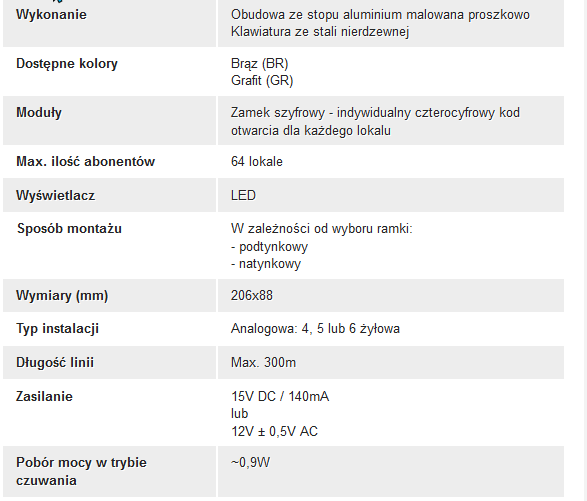 Domofon analogowy z zamkiem szyfrowym