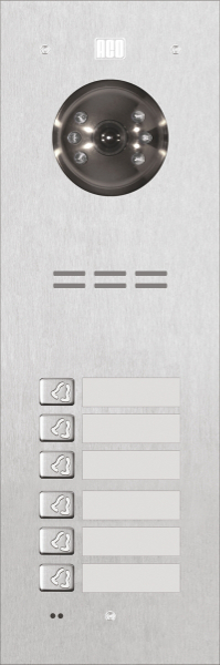 Wideodomofon cyfrowy z czytnikiem breloków i 6 przyciskami.
