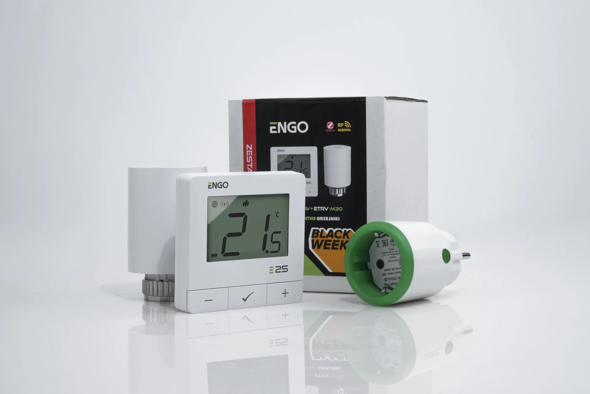 ENGO Controls Inteligentny zestaw ogrzewania Czarny (E25-BATB-4 + ETRV-M30 + EPlug WiFi)