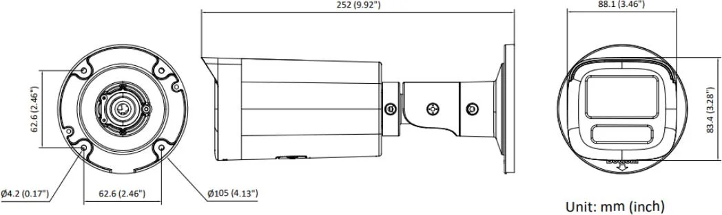 | Wymiary kamery | Ø105 × 252 mm |