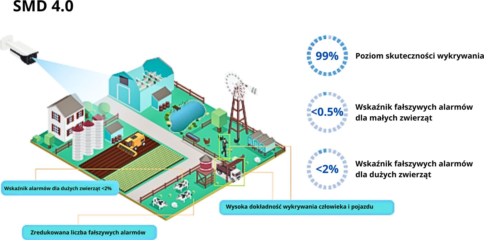 | Intelligence IVS (Ochrona Perymetryczna) | Intruzja, linia przekroczenia (wsparcie dla klasyfikacji i dokadnego wykrywania pojazd¢w i ludzi) |
