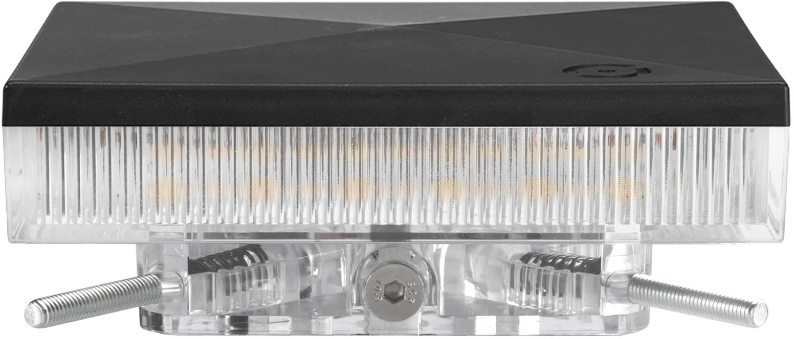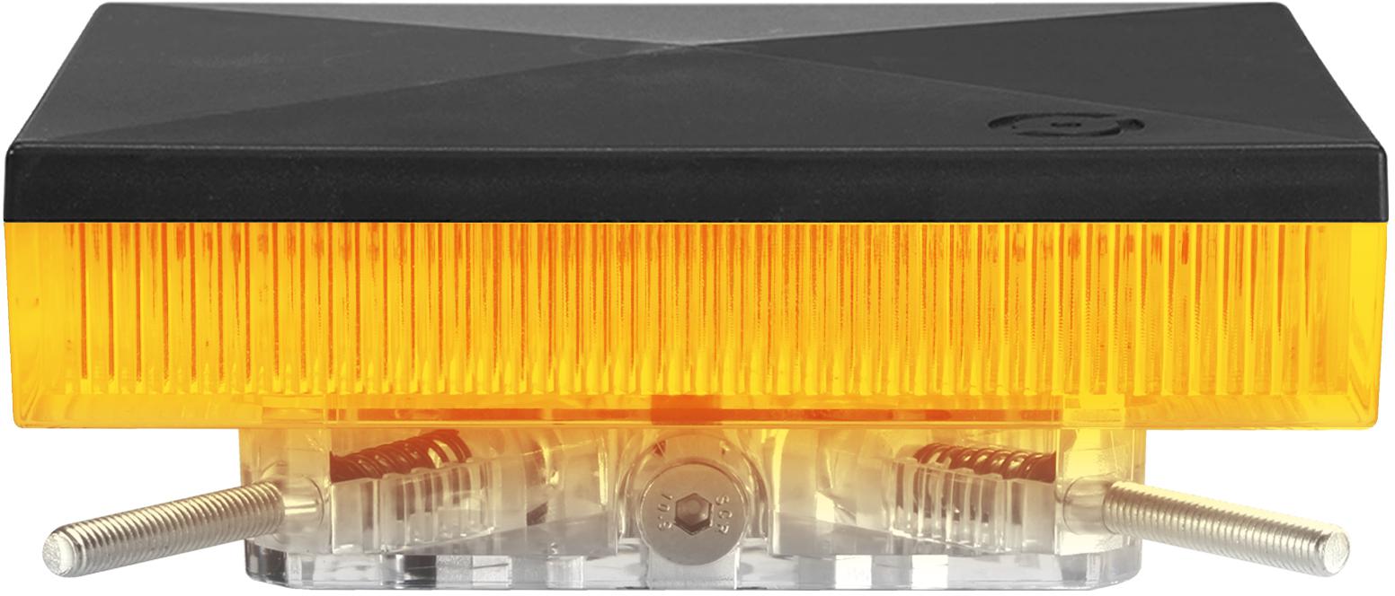 Lampa oświetleniowo-sygnalizacyjna SŁUPKOWA stanowi zakończenie prostokątnego słupka o wymiarach 100 x 100 mm lub 120 x 120 mm. Wymiary otworu słupka muszą wynosić minimum 85 x 85 mm. Lampa zasilana jest napięciem 12-24V AC/DC lub 230V AC (pomarańczowy), 12-24V AC/DC (biały).