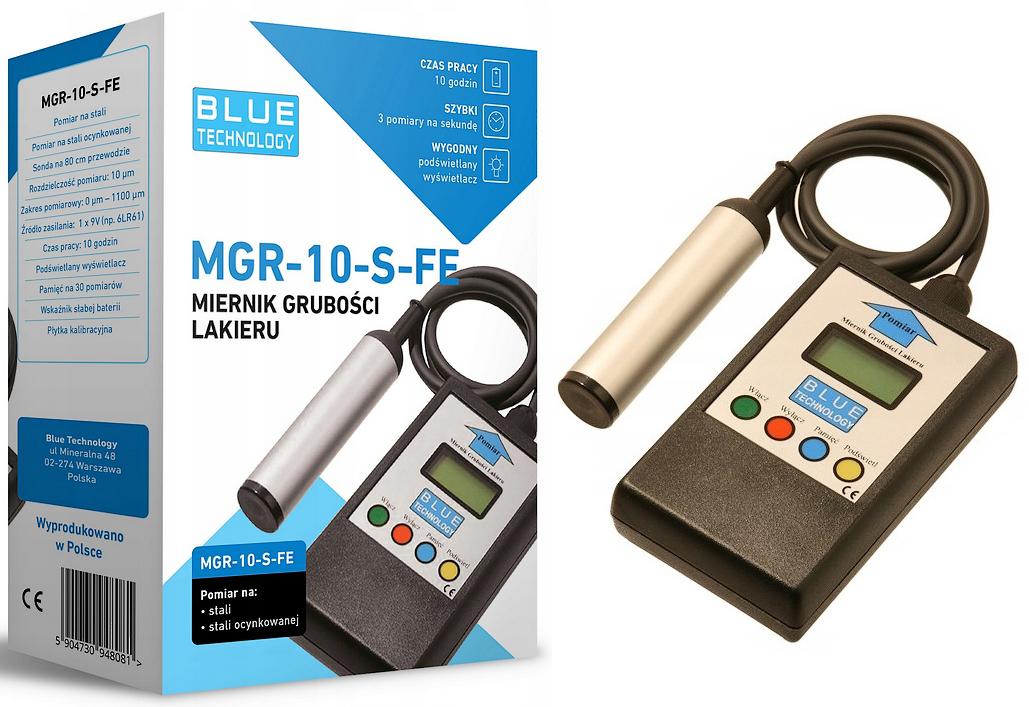 Miernik lakieru MGR-10-S-FE automatycznie dokonuje pomiarów na powierzchniach wykonanych ze stali, stali ocynkowanej.