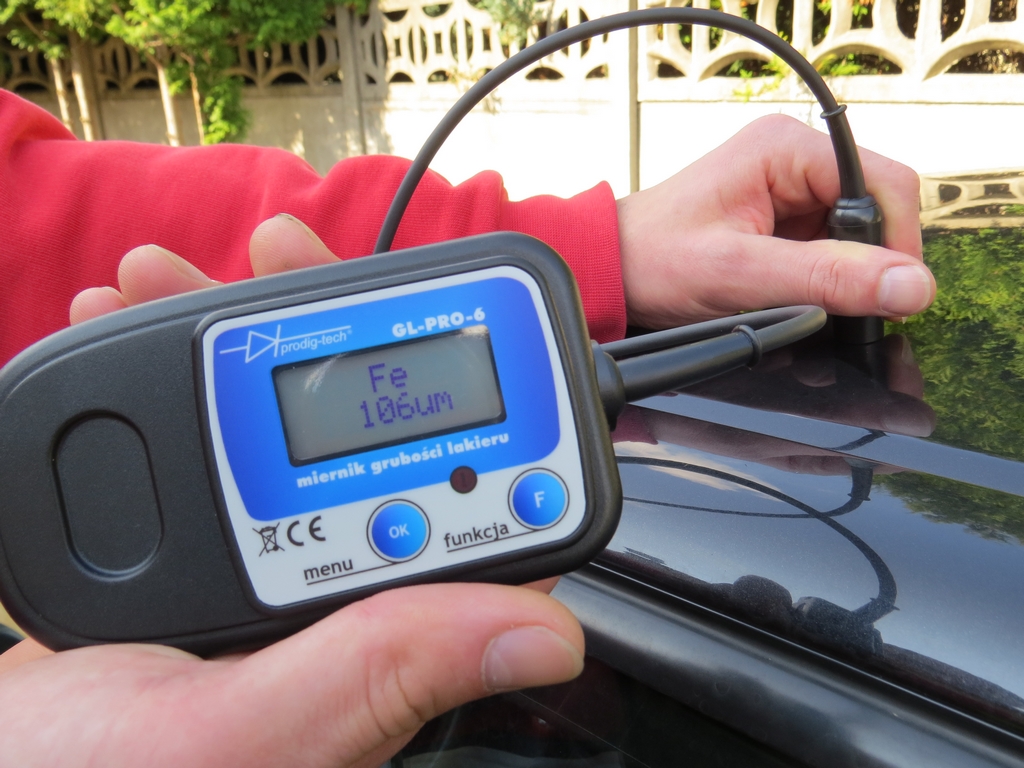 Grubościomierz lakieru GL-PRO-6-FAZ , służy do pomiaru grubości warstwy lakieru nałożonej na blachę samochodową stalową i stalową ocynkowaną i aluminiową. Urządzenie automatycznie wykrywa rodzaj podłoża.