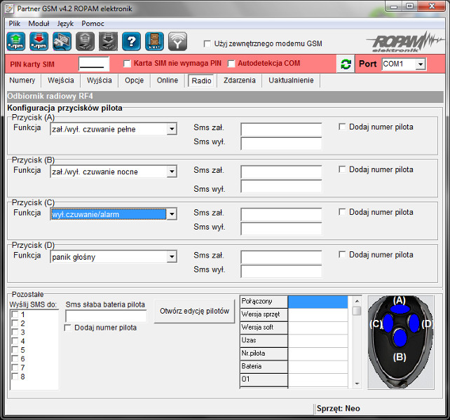 Sterowniki radiowe serii RF-4 przeznaczony są do systemów zdalnego sterowania poprzez piloty radiowe. W zestawie z centralą sterownik RF-4 tworzy elastyczny system alarmowy zarządzany pilotami radiowymi.
