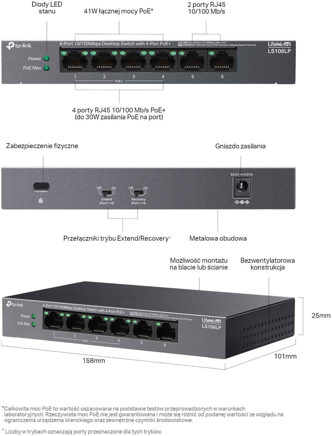 Obsługa PoE (Power over Ethernet):Tak