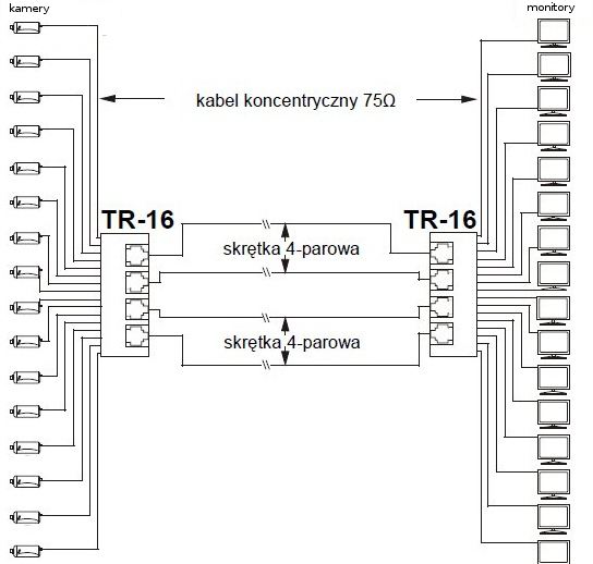Typ złącza symetrycznego:16 x Zaciski kablowe / 4 x RJ-45 Gniazdo