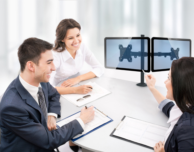 Uniwersalny uchwyt do dwóch telewizorów lub monitorów wszelkich marek i typów - LED, OLED, PLASMA, LCD.