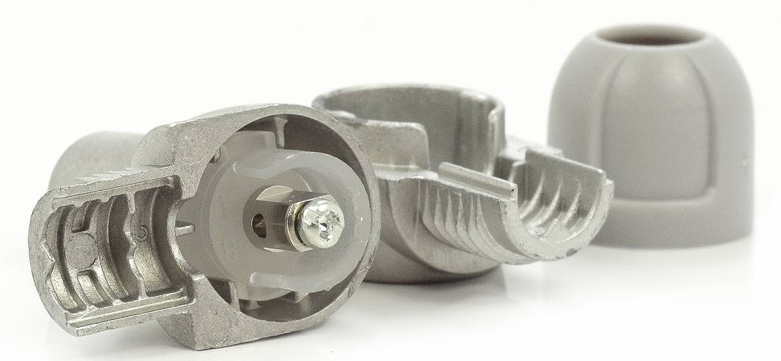 Wykonanie z odlewu (zamak) oraz dodatkowa warstwa metalowa zapewniają bardzo wysokie ekranowanie (klasa A+).